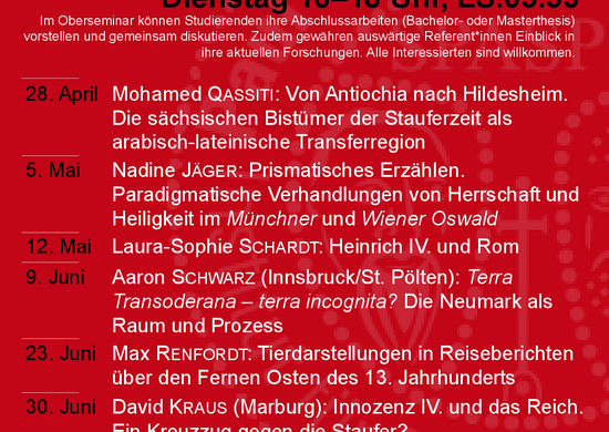 Andreas BIHRER (Kiel): Der Bischof im Fokus? Die Erfindung der ostfränkisch-deutschen Bistumsgeschichtsschreibung im 11. Jahrhundert | Oberseminar Mittelalterliche Geschichte