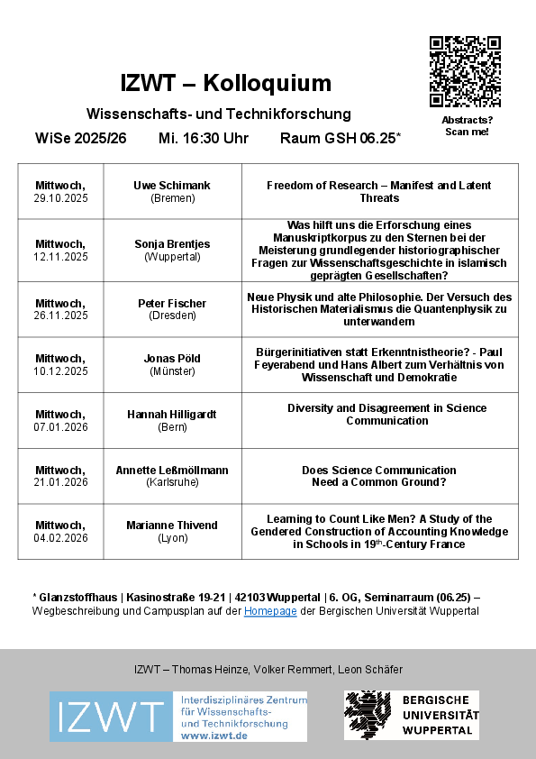 Annette Leßmöllmann (Karlsruhe): Does Science Communication Need a Common Ground? | IZWT-Kolloquium