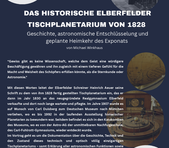 Michael Winkhaus: Das historische Elberfelder Tischplanetarium von 1828. Geschichte, astronomische Entschlüsselung und geplante Heimkehr des Exponats