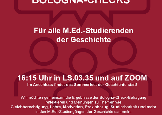 Getränke werden durch das Historische Seminar gestellt. Zur Verpflegung bringen…