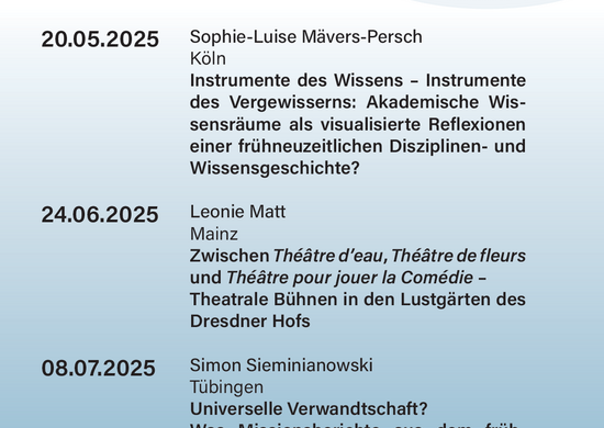 Leonie Matt (Mainz): Zwischen Théâtre d’eau, Théâtre de fleurs und Théâtre pour jouer la Comédie – Theatrale Bühnen in den Lustgärten des Dresdner Hofs | Kolloquium zur Wissenschaftsgeschichte der Frühen Neuzeit