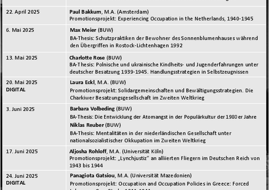 Paul Bakkum, M.A. (Amsterdam): Promotionsprojekt: Experiencing Occupation in the Netherlands, 1940-1945 | Forschungscolloquium Neuere und Neueste Geschichte
