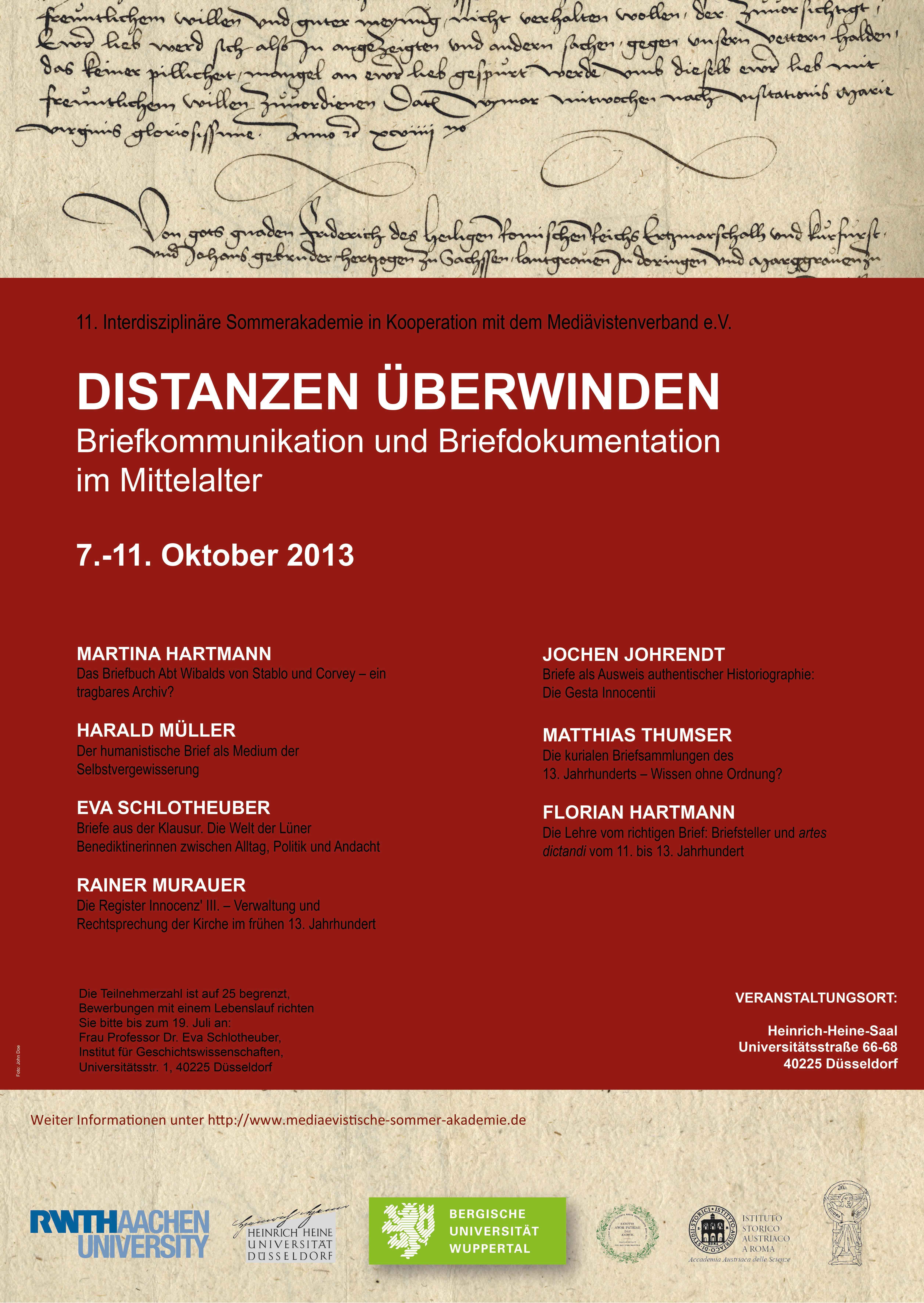 11. Interdisziplinäre Sommerakademie in Kooperation mit dem Mediävistenverband e.V.
