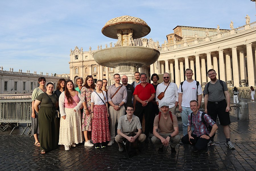 Vom 8. bis 13. März 2022 wandelte eine Gruppe Wuppertaler Studentinnen und Studenten unter der Leitung von PD Dr. Arne Karsten durch die Ewige Stadt auf den Spuren deutscher Romreisender. Nach den ruhmreichen Gesandtschaften der Jahre 2017 und 2019 handelte es sich hierbei um die nunmehr dritte Delegation, welche die Bergische Universität an den Heiligen Stuhl entsandte. Während eine päpstliche Audienz weiterhin auf sich warten lässt, brachten die Studierenden dafür die Steine von Sankt Peter umso vernehmlicher zum Sprechen.