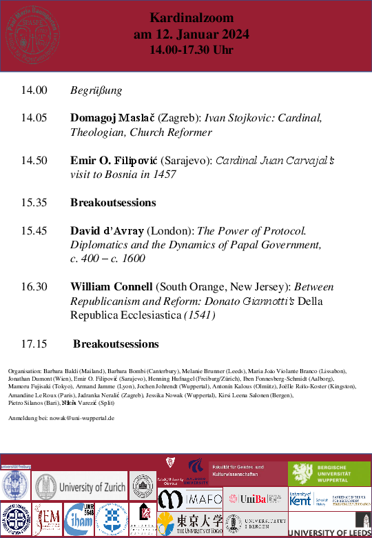 Barbara Bombi (Canterbury), Maria João Violante Branco (Lissabon), Emir O. Filipović (Sarajevo), Mamoru Fujisaki (Tokyo), Henning Hufnagel (Freiburg/Zürich), Armand Jamme (Lyon), Jochen Johrendt (Wuppertal), Sevde Koçak (Wuppertal), Wendan Lee (Peking), Amandine Le Roux (Paris), Jadranka Neralić (Zagreb), Jessika Nowak (Wuppertal), Joëlle Rollo-Koster (Kingston)